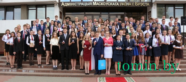 У администрации Московского района Бреста 9 июня состоялась торжественная церемония чествования лучших выпускников школ, лицеев и гимназий. Самые талантливые и целеустремленные молодые люди в этот день получили 89 золотых и 4 серебряных медали. С высокими достижениями поздравили также семерых победителей республиканских предметных олимпиад, а также восьмерых выпускников, достигших успехов в спорте, искусстве и общественной жизни.