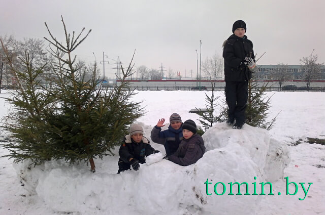 Взгляните на нее через объектив нашей фотокамеры. Здесь есть все положенные этому жанру атрибуты и персонажи: и волшебные деревья, и почти выстроенный замок, и чудо-мельница, и верный страж зимы – снеговик…