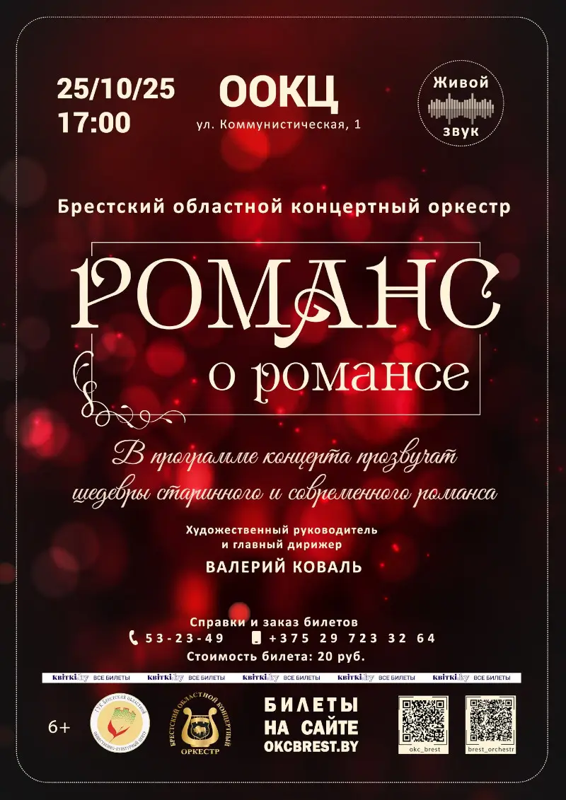 25 сентября 2025 года в концертной программе «Романс о романсе» прозвучат шедевры старинного русского и современного романсов в исполнении Брестского областного концертного оркестра и солистов-вокалистов.