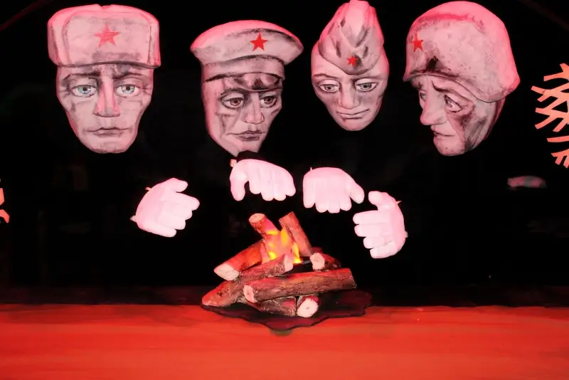 Автор пьесы Юлия Поспелова показала войну так, как ее может понять ребенок – вместе с героями спектакля зрители проходят фронтовыми дорогами и видят ужасное горе по имени Война глазами наивной и доброй цирковой собаки.