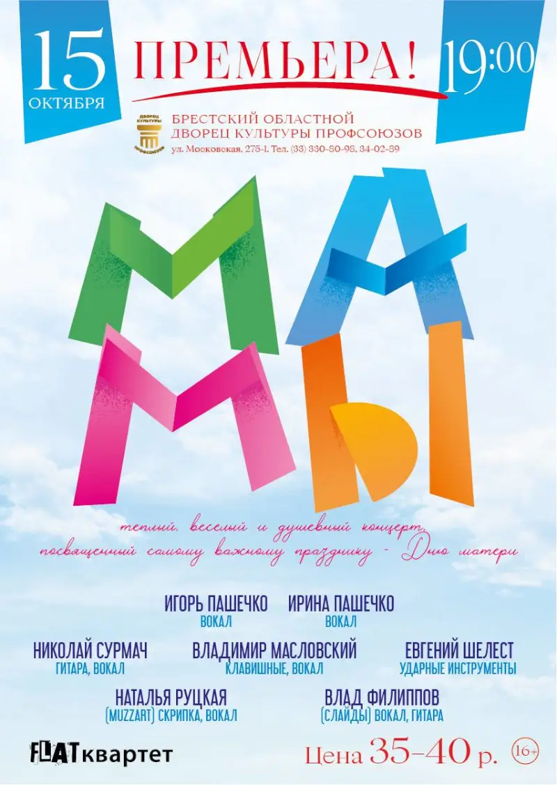 Предлагаем вашему вниманию афишу концертов, спектаклей и других мероприятий, которые пройдут во Дворце культуры профсоюзов в Бресте. Подробную информацию о самом ДК вы найдете на TOMIN.BY здесь.