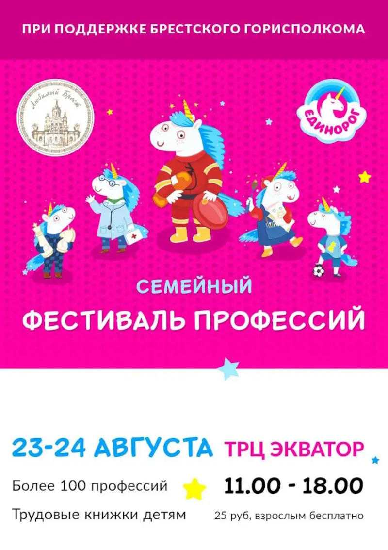 Большой семейный фестиваль профессий пройдет при поддержке брестского горисполкома 23-24 августа. Это более 100 профессий для детей!