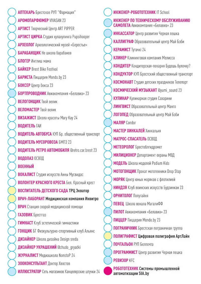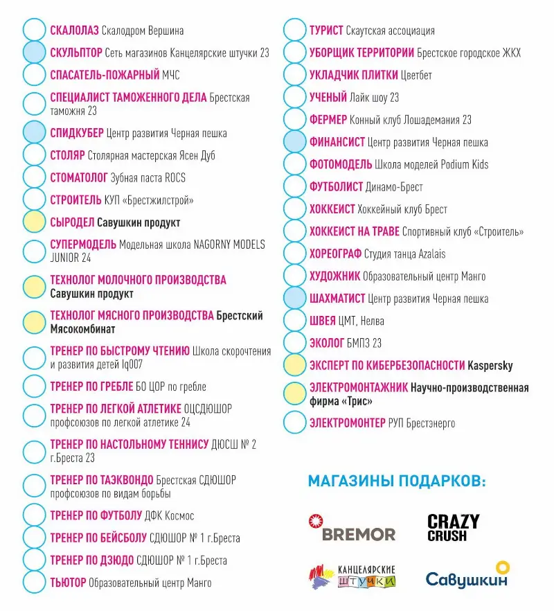 А еще профессии IT-сферы, артист цирка, спасатель, блогер, аптекарь, пиццер, художник, танцор и многие другие.