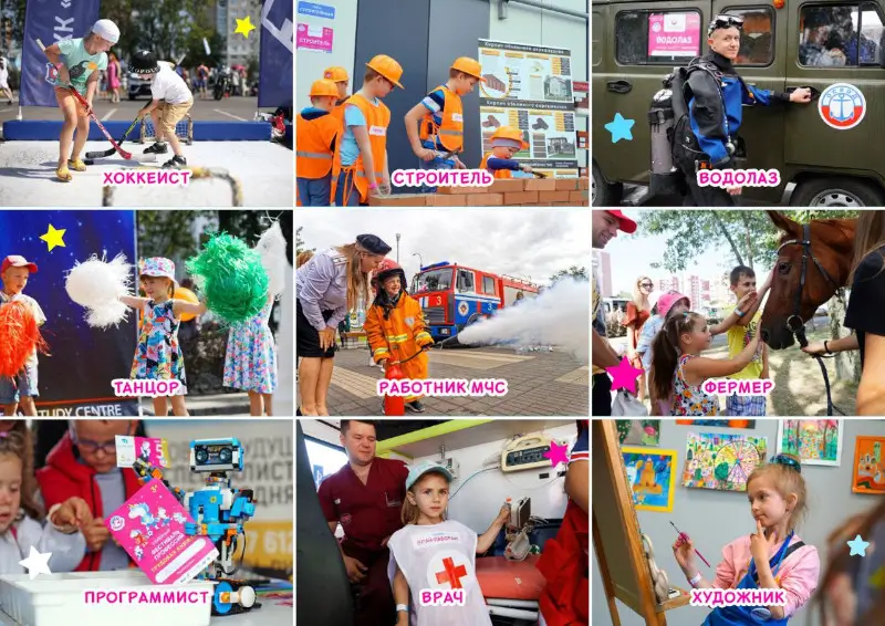 Повар, водитель, эколог, пожарный, врач, программист, барабанщик, фермер и многие другие профессии ждут вас: