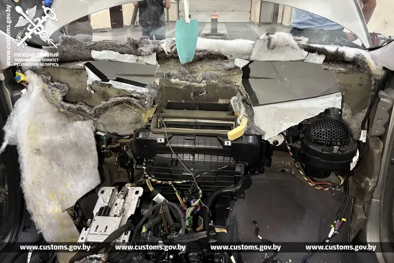 На «Пежо» возвращалась домой через ПП «Брест» гродненчанка. Сканограмма выявила некое вложение в панели управления ее авто.